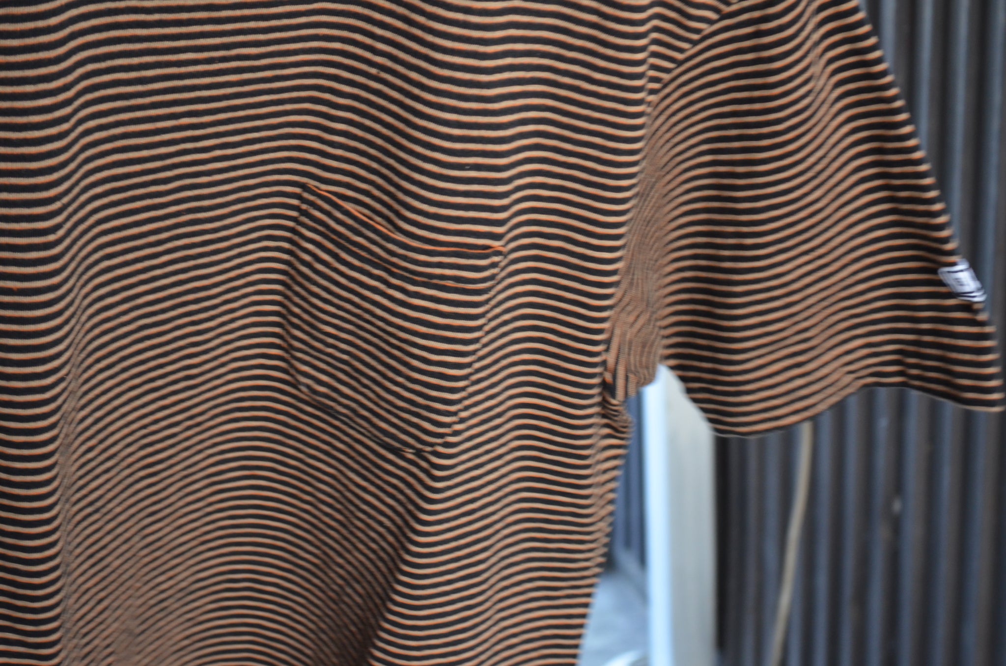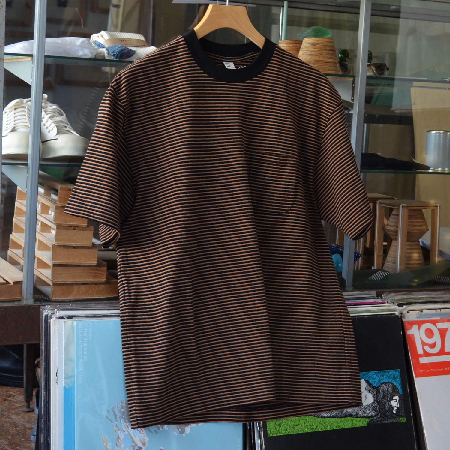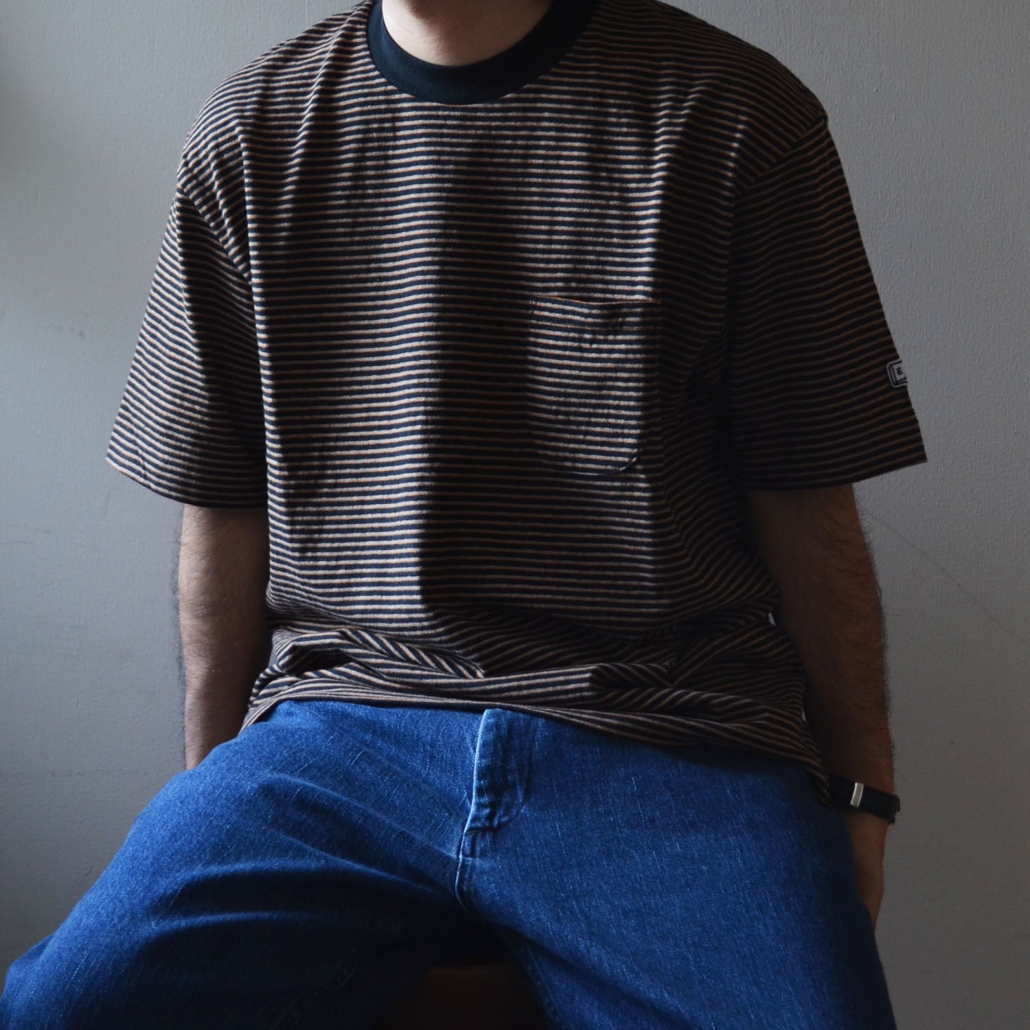 Ends and Means " Horizonal Striped Pocket Tee " Black Stripe